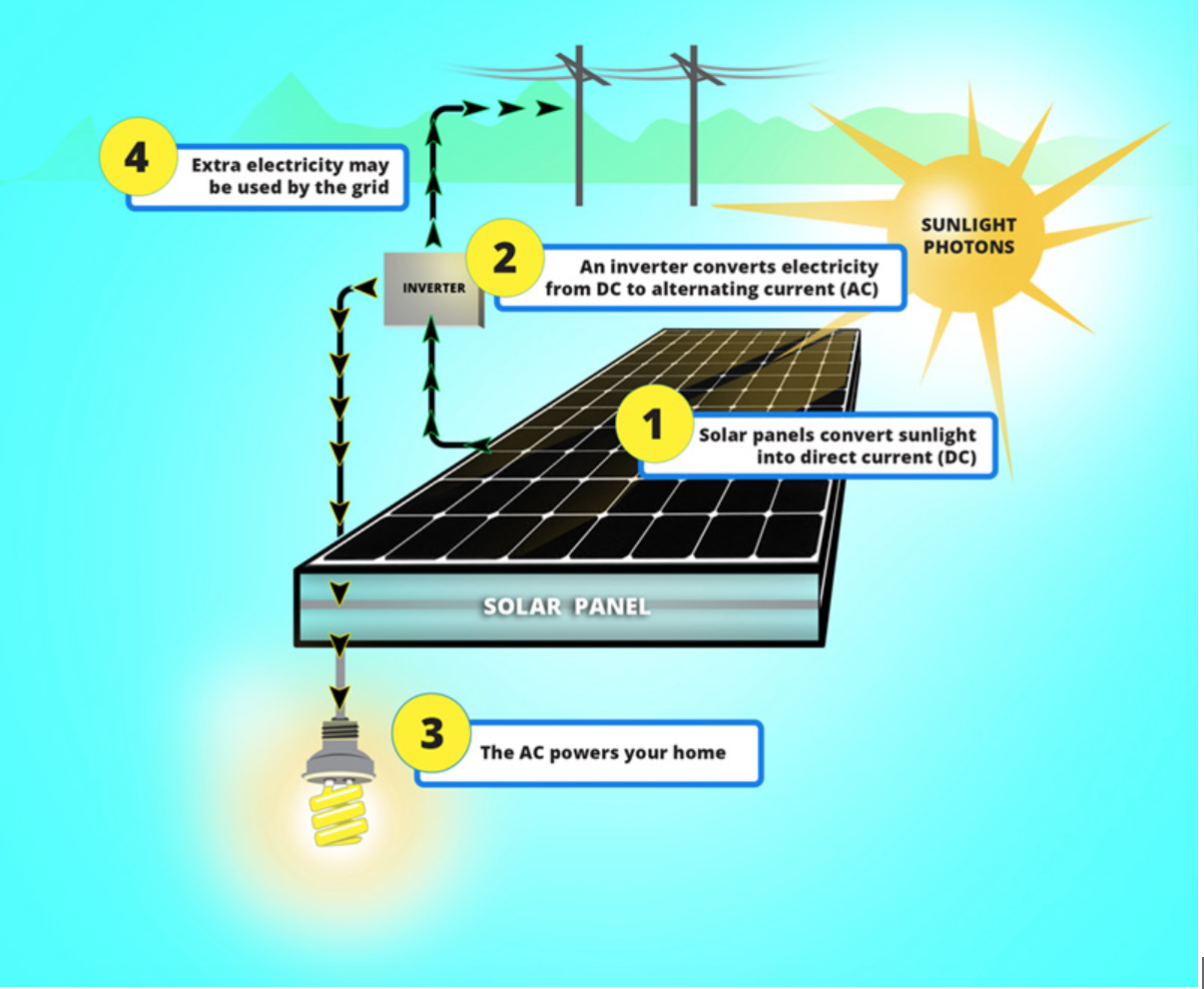 When sunlight hits the solar panels, it excites the electrons inside the cells, making them jump around and create electricity. It's kind of like a dance party!